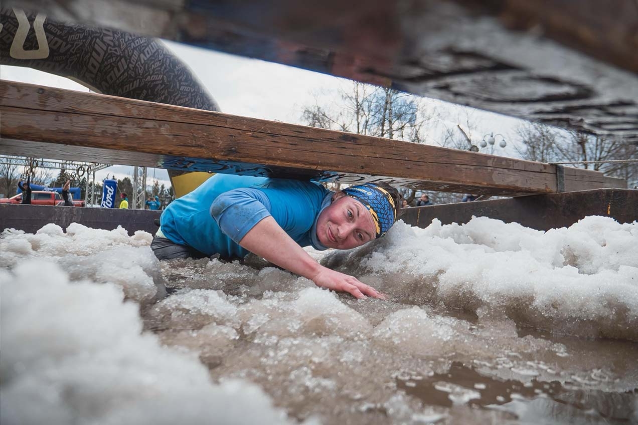 Vodní překážka v podobě jámy nebo kontejneru, která je doplněna sněhem a vodou. Závodník (závodnice) musí překonat překážku v celé délce. Pokud je opatřena zábranou, musí překonávat vždy spodem.